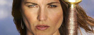 was a thick mantle, fastened by a brooch. Now she grasped a spear, to